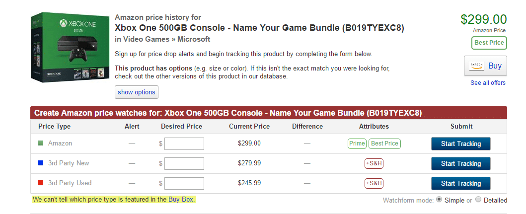 Initially, we are going to see some information including Amazon’s new price for the item as well as the Third-party New price and the Third-party Used price.