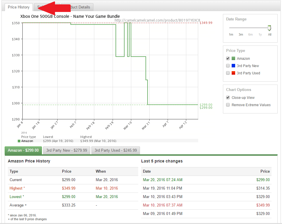 Now we’re going to scroll down and we’re going to see a very useful tool which is the Price History tab. This tool allows us to see the price fluctuations of the product over time. This is very helpful as it allows you to track price fluctuations throughout the year and identify times when the product will be the most profitable to sell.