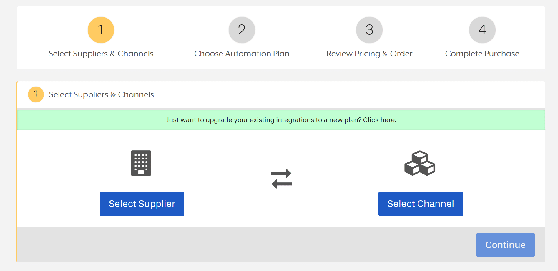 Here, you will select which supplier and which platform you would like to integrate.