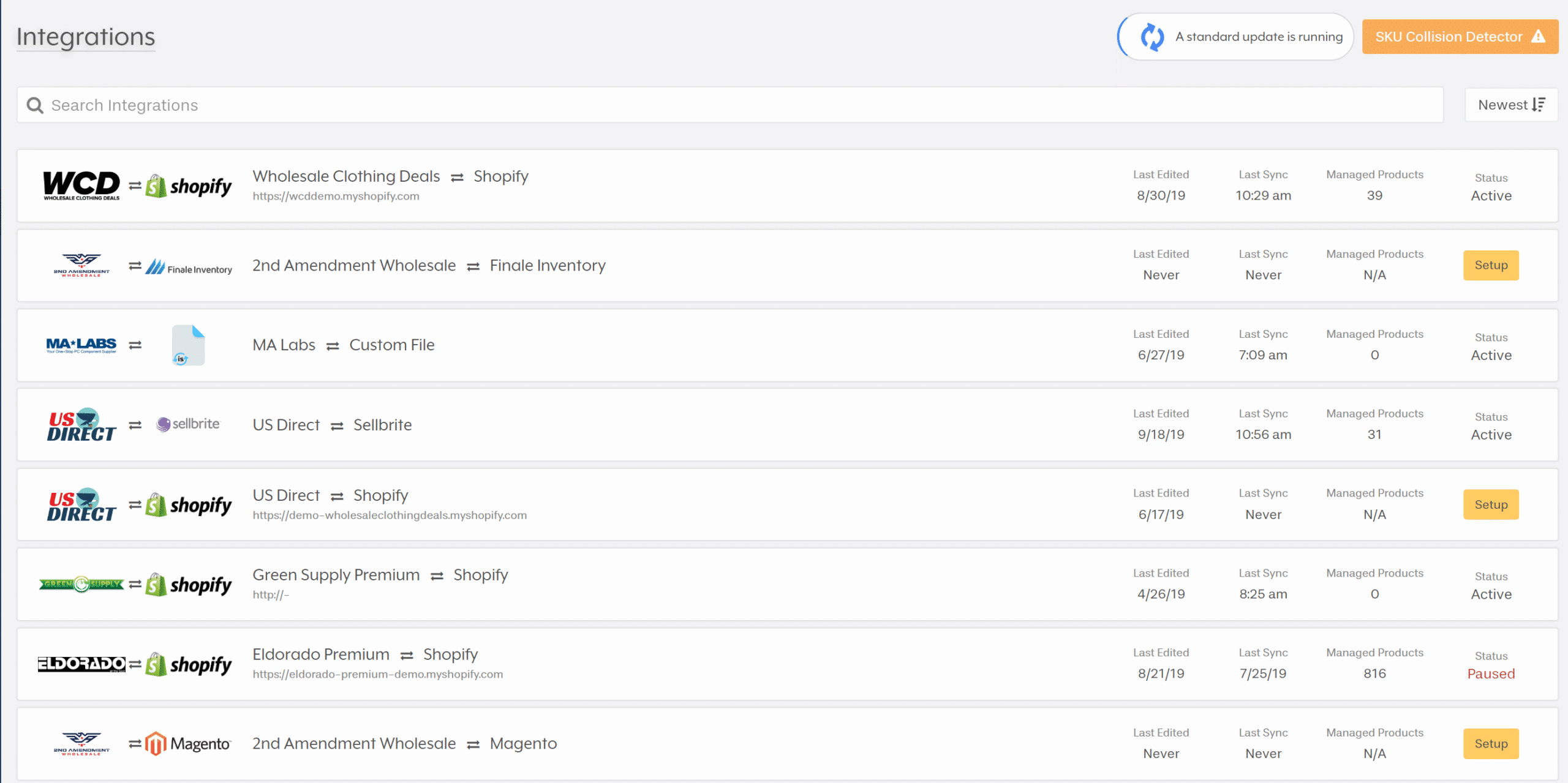 The integrations tab is where most people will spend the majority of their time. This is the section of the dashboard that allows you to select products, customize products, recategorize products, and do all of the other things that you would want to do to manage the products on your website.