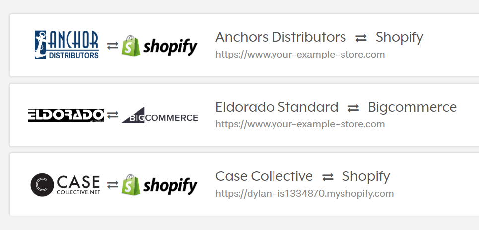 These three banners indicate which integrations are currently available to you. Clicking each will show you the Supplier Feed, Product Queue, and Store Catalog.