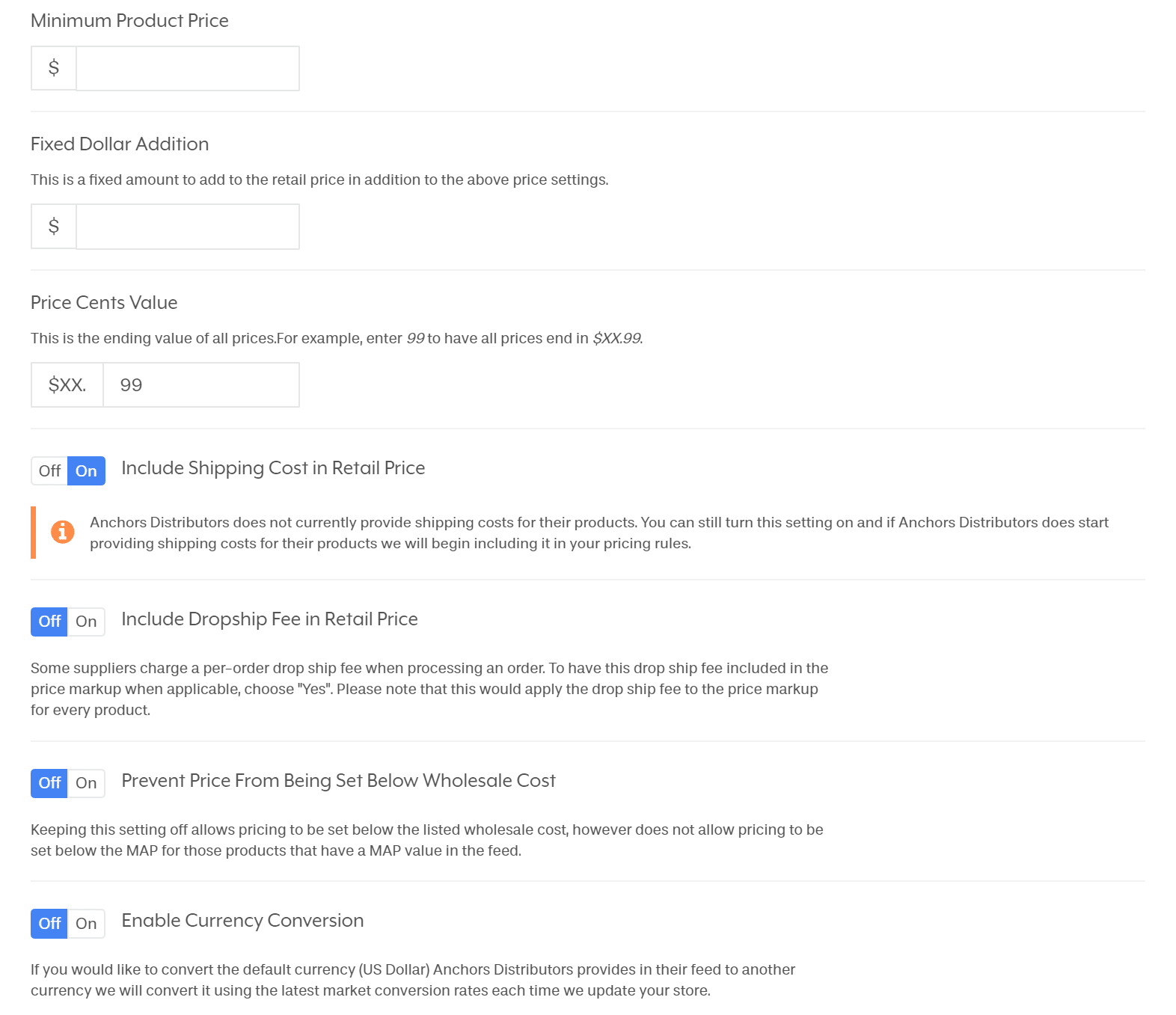 Include Dropship Fee in Retail Price: If the supplier provides us the dropship fee, that fee will be added to the retail price for the product.