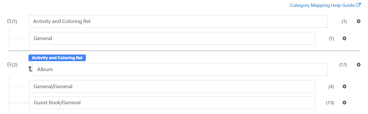 Both the Child and Parent categories can be renamed to be combined; for example, renaming all of the categories to “Activity and Coloring Rel” will combine all of the categories and Child categories into one large category named “Activity and Coloring Rel” that contains all of the subcategories of every other Parent Category.