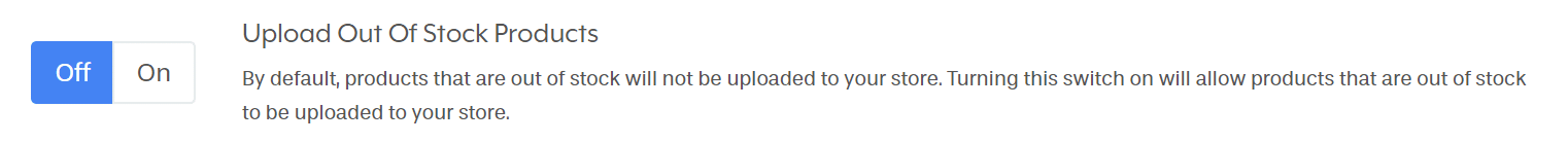 This tool will stop products that are marked “out of stock” from being uploaded, or will allow products that are out of stock to be uploaded, depending on the setting selected. This tool is also affected by the Minimum Quantity Filter.
