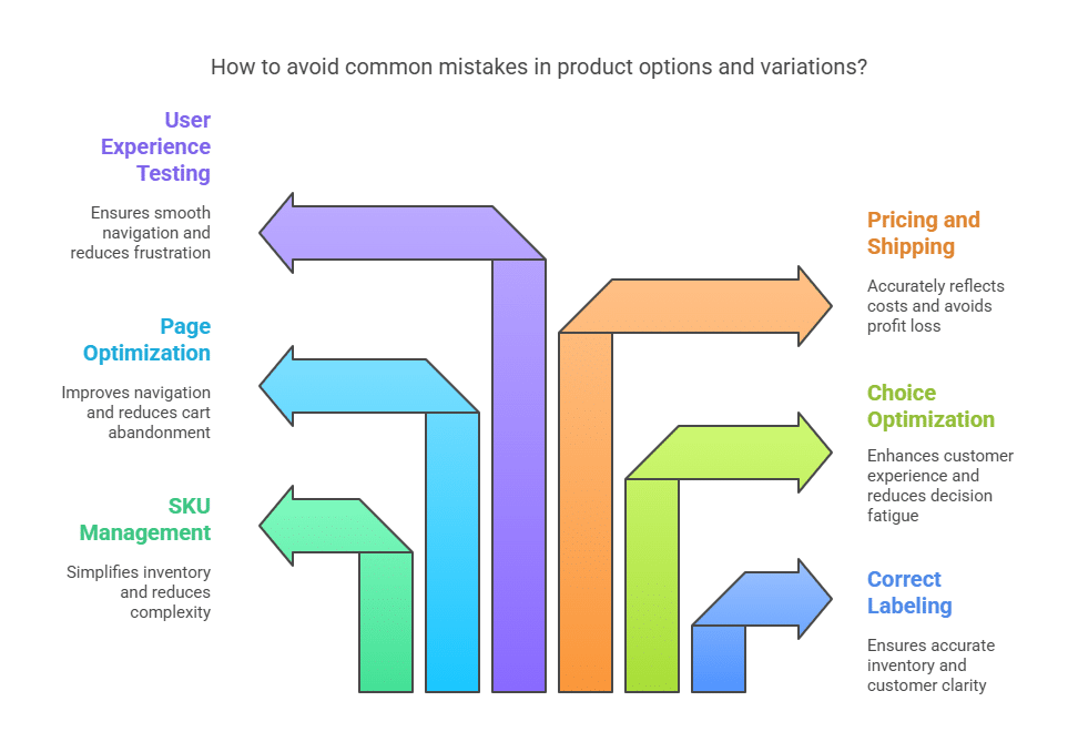 Getting product options and variations mixed up can lead to inventory issues and a poor shopping experience. Here are some common mistakes to watch out for: