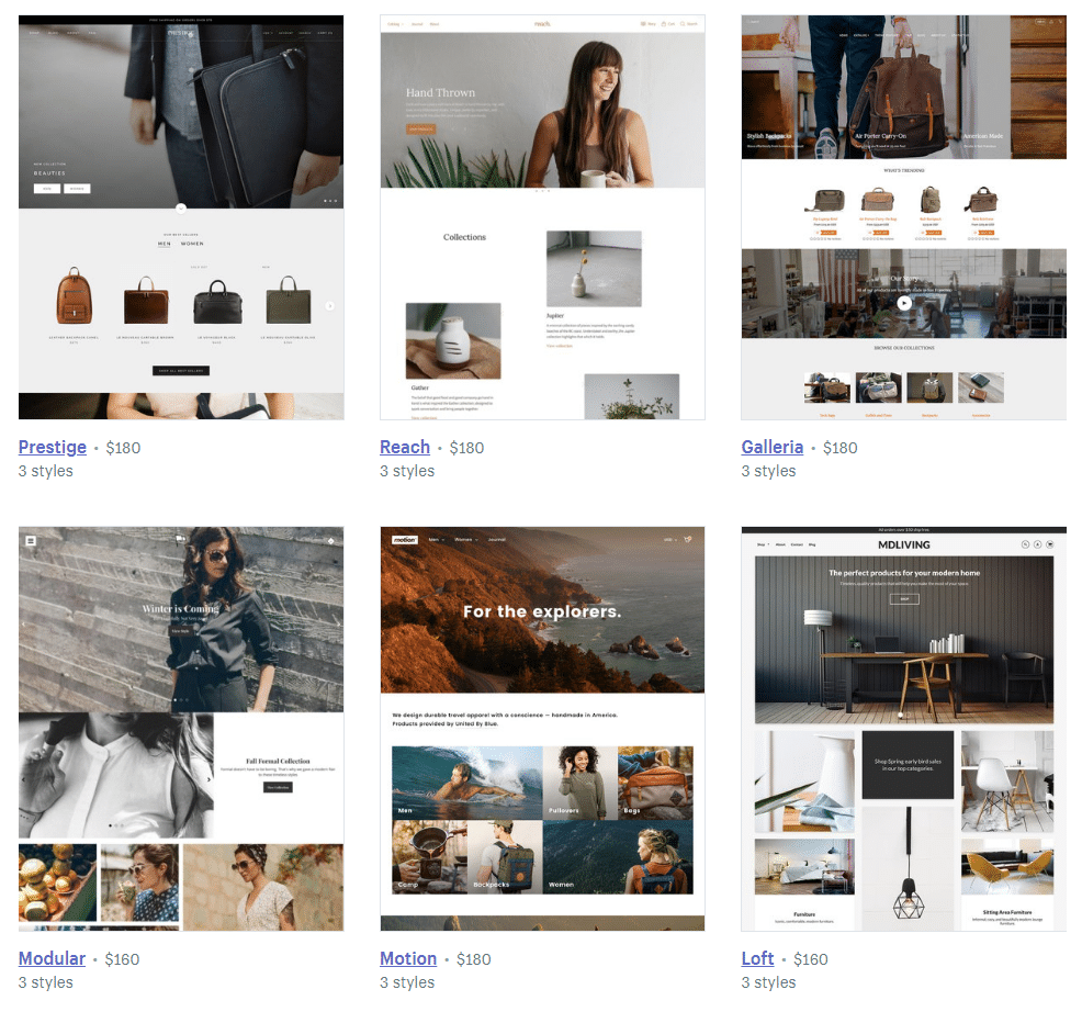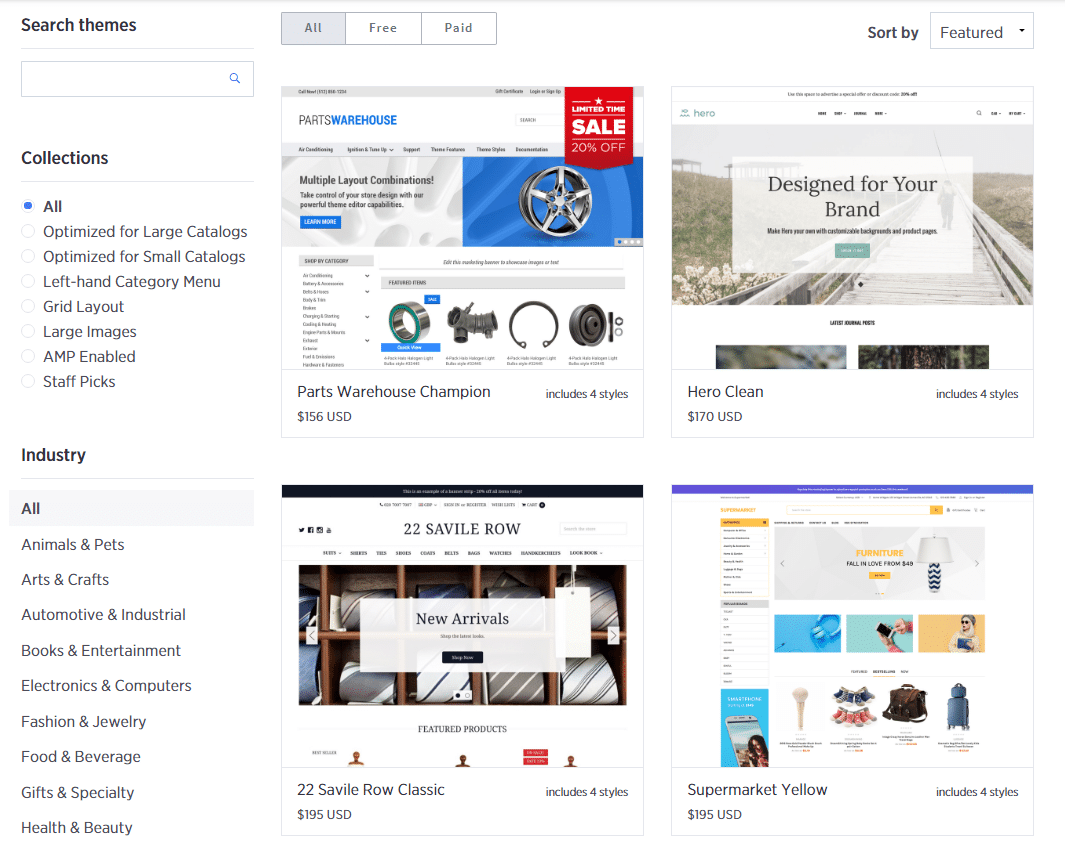 Click here to view all Shopify themes and demos, and click here to view all BigCommerce themes and demos.