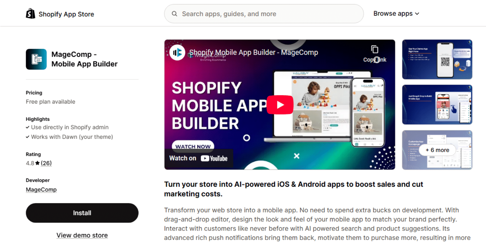 With MageComp Mobile App Builder, turn your Shopify store into a high-performing mobile app – no coding required. Design your app with a simple drag-and-drop editor that gives you full control over layout and branding. Customize menus, ensure smooth checkout, and create a seamless shopping experience. Re-engage customers through smart push notifications, reviews, and wishlists. Go global with support for multiple languages, currencies, and payments. Highlight best-sellers and top brands with slider displays for easy browsing.
