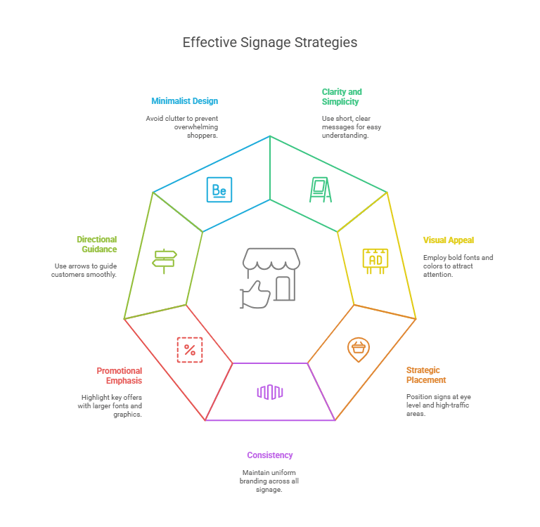 It also strengthens a store’s branding and sets the mood. Simple wording, eye-catching visuals, and smart placement can boost sales and keep customers happy.